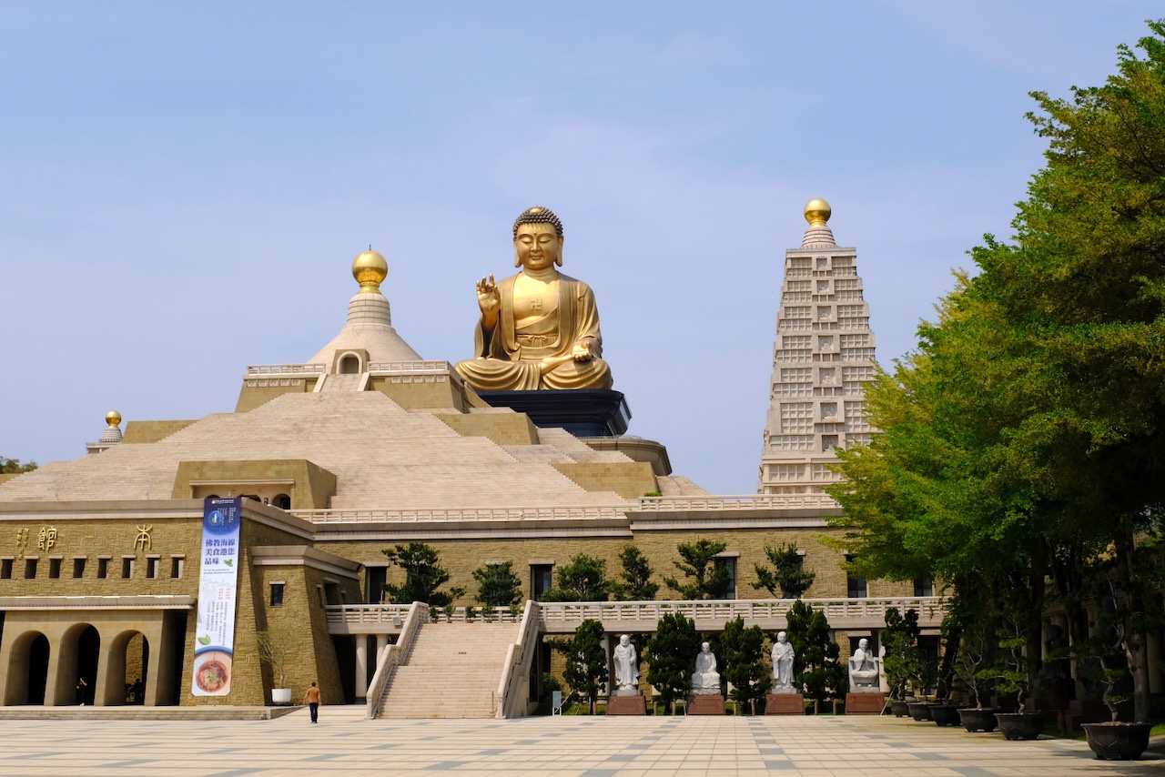 Nachdem wir in Kaoshiung ja bereits riesige Tiger, Drachen, Krieger und Fische bewundert hatten, haben wir unsere Begeisterung fĂĽr Gigantismus im Fo-Guang-Shan-Buddha-Museum auf die Spitze getrieben: Dort steht ein ĂĽbertrieben groĂźer Goldbuddha.