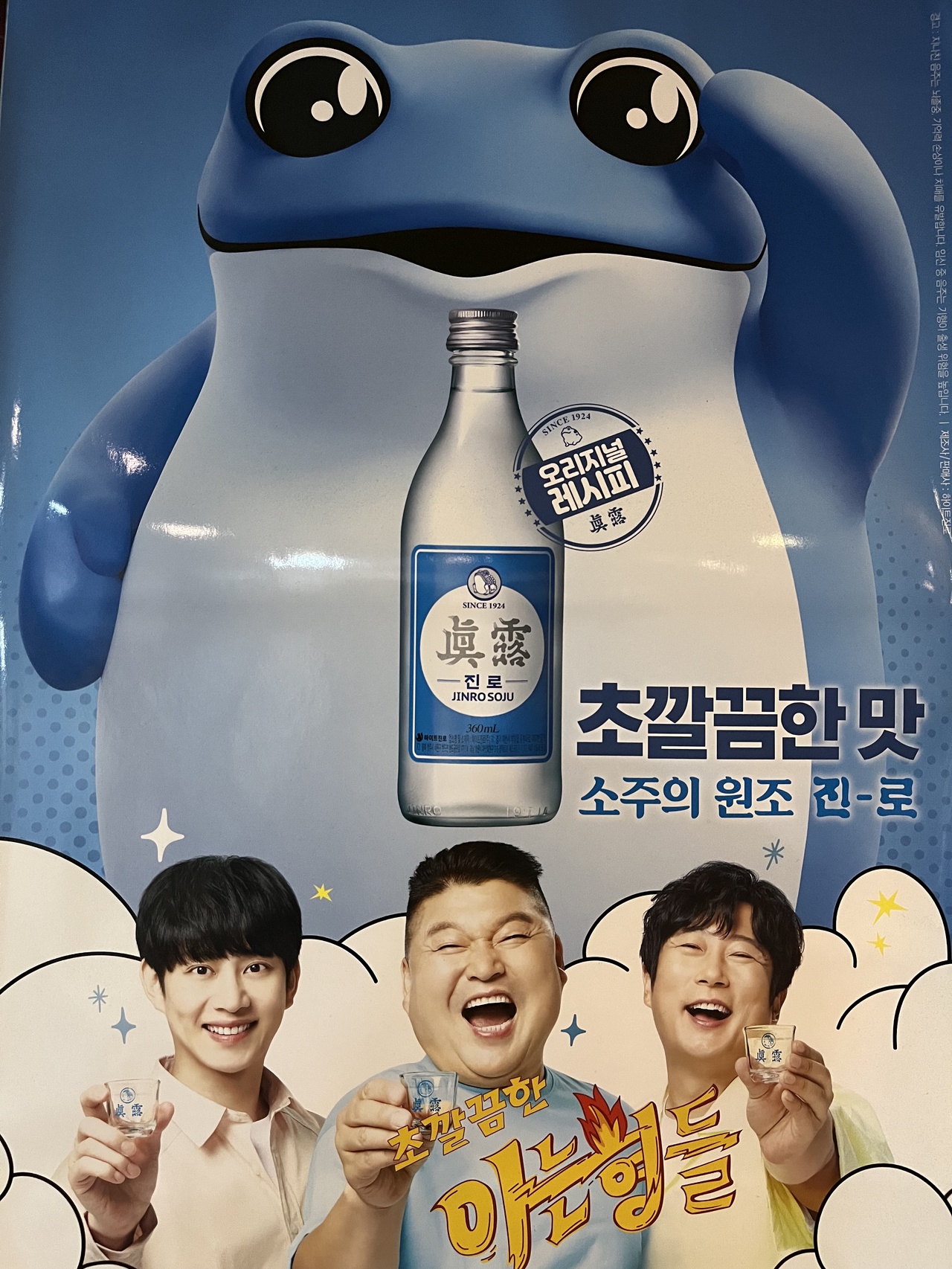 Der Frosch ist das Maskottchen der Soju Marke Jinro.