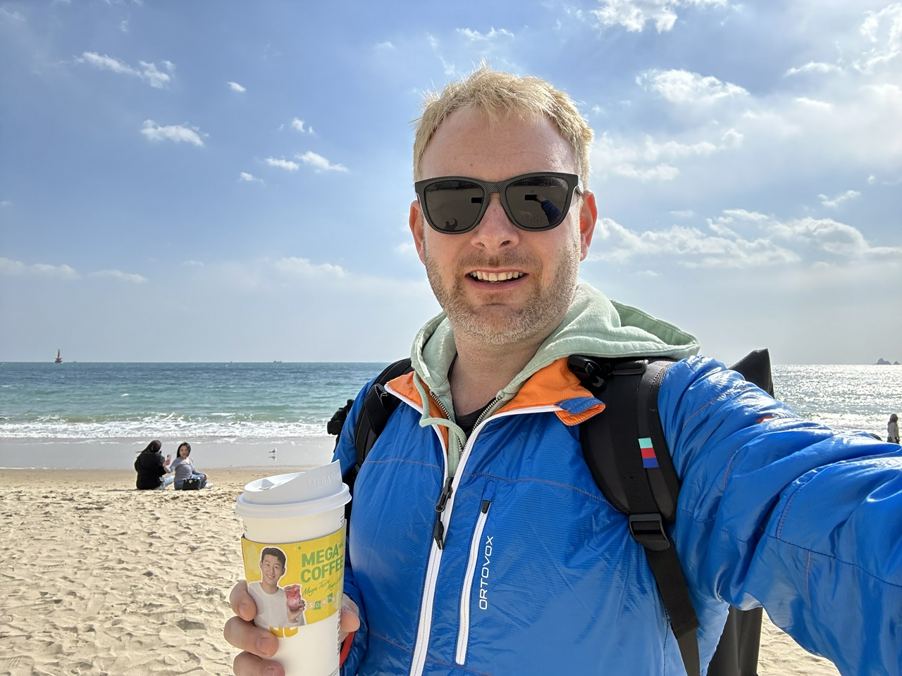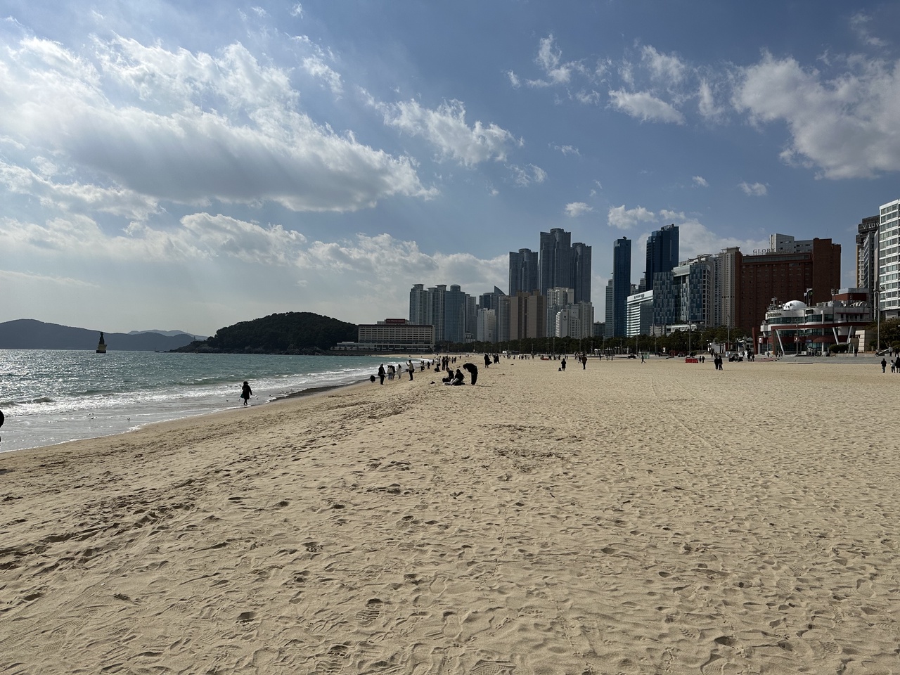 Haeundae Beach. Der bekannteste und beliebteste Strand Südkoreas. Im Februar entspannt, im Sommer tummeln sich hier gerne mal bis zu 120000 (!!!) Leute in gelben Schwimm-Donuts.