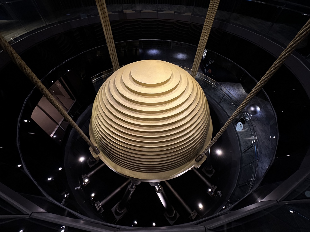 Fast verrückter als der Turm selbst ist dieser 660 Tonnen (!) schwere Schwingungstilger zwischen dem 88. und 92. Stockwerk, der das Gebäude bei Erdbeben und Taifunen stabilisiert. Punkte dafür, dass man sich das Ding aus direkter Nähe anschauen darf.