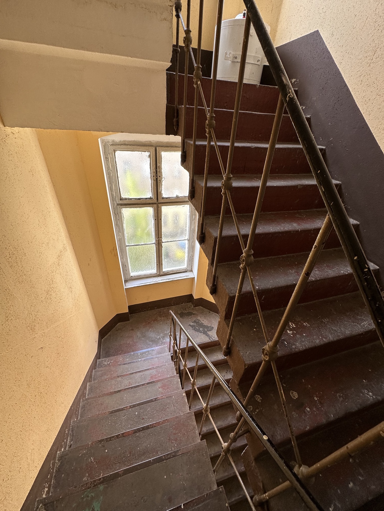 4 enge, steile Stockwerke führen zu unserer Wohnung. Der Boiler war vermutlich mal für unsere Wohnung gedacht, aber dann hatte man wohl keine Lust mehr den einzubauen und so steht er nun da, vermutlich seit Jahren.