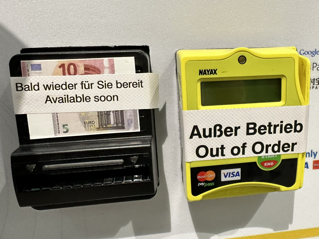 Öffentliche Toiletten sind absolute Mangelware und wenn überhaupt vorhanden sind sie oft kaputt, in grausamen Zustand und kosten Geld. Bargeld. Also Münzen. Nur passend!! Wenn ein Karten-/NFC-Leser vorhanden ist so geht er zu 90% nicht. Auch nicht wie hier am Hauptbahnhof Berlin. Ergebnis: Alles stinkt nach Pisse.