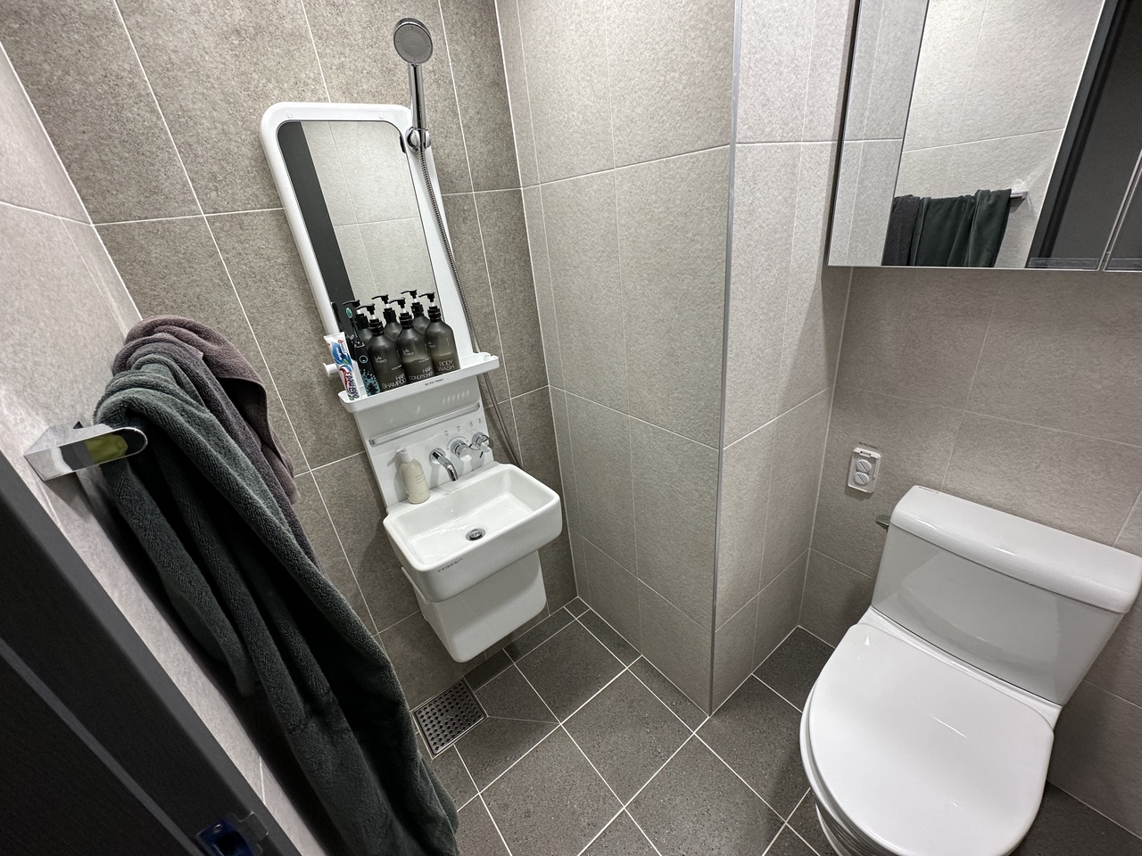 Mein Badezimmer. Leider habe ich keine Dusche, sondern flute bei jedem Duschen den gesamten Raum. I’m not a big fan of this.