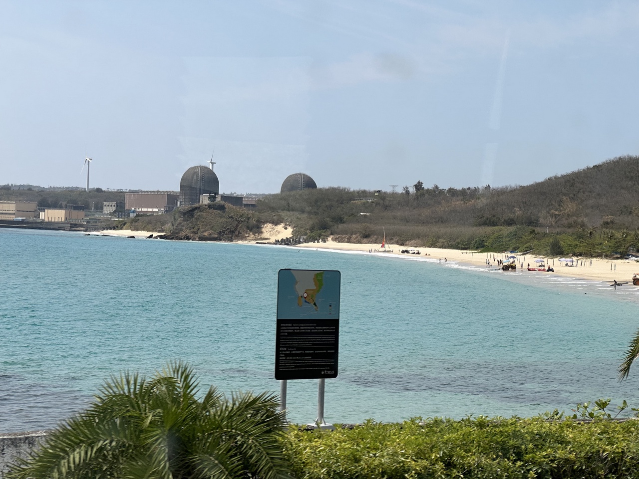 Nicht der Strand, an dem ich gerade planschen war aber nicht weit weg: Das südlichste von drei Atomkraftwerken in Taiwan, malerisch neben diesem Badestrand. Der Atommüll wird übrigens ganz praktisch auf einer kleinen Insel im Osten von Taiwan verklappt, da wohnen hauptsächlich indigene Taiwanesen, die sich nicht wirklich wehren können. Der Klassiker!