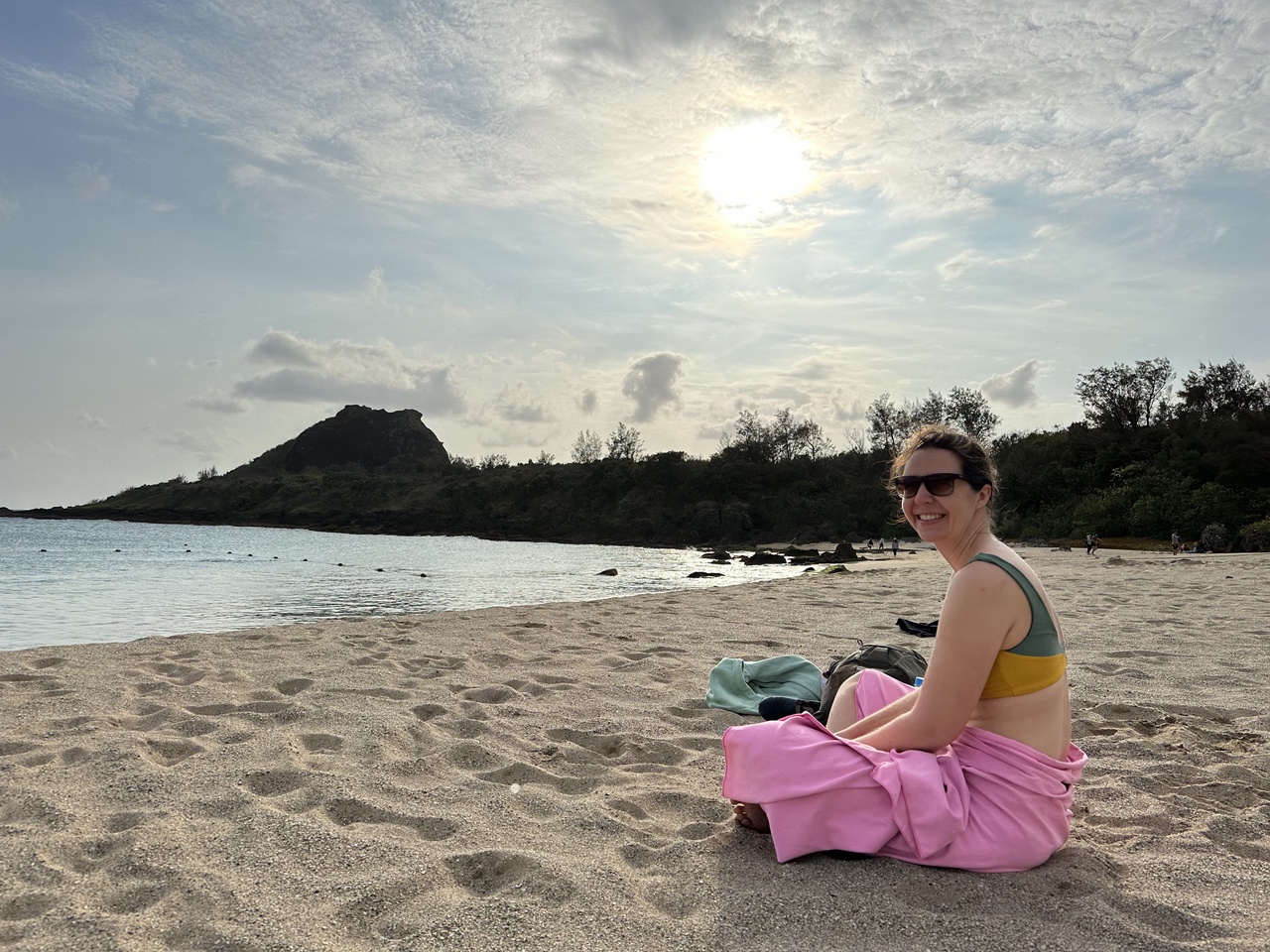 Und schon sitzt man am Strand. Unsere nette Lady im Hotel war der Meinung, dass eigentlich gerade keine Badesaison ist, wir habens trotzdem gemacht. Es hat ja nur 26 Grad, bibber.