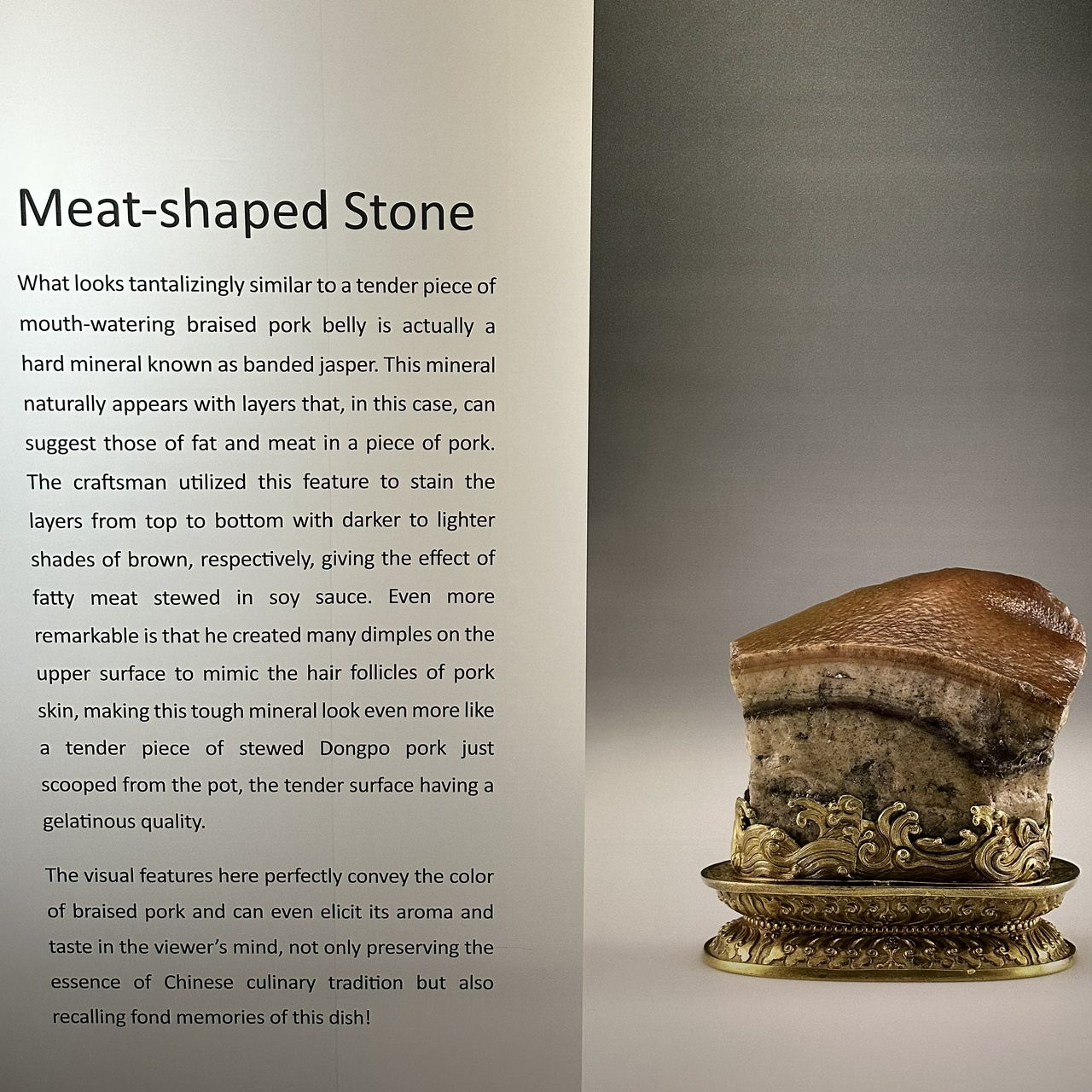 Letzte Woche durfte ich im nationalen Palastmuseum von Taiwan so etwas ähnliches wie die chinesische Mona Lisa bewundern: Den kaiserlichen Fleischstein aus der Qing Dynastie (1644-1911). Wie deutsch kann ein Wort eigentlich sein? “Fleischstein” könnte gut auch der Name einer drittklassigen Rammstein Coverband sein. Am 1. Mai in der Mehrzweckhalle Unterpreppach: Fleischstein, mit dem Auftakt zur Feuer-frei Tour 2023!