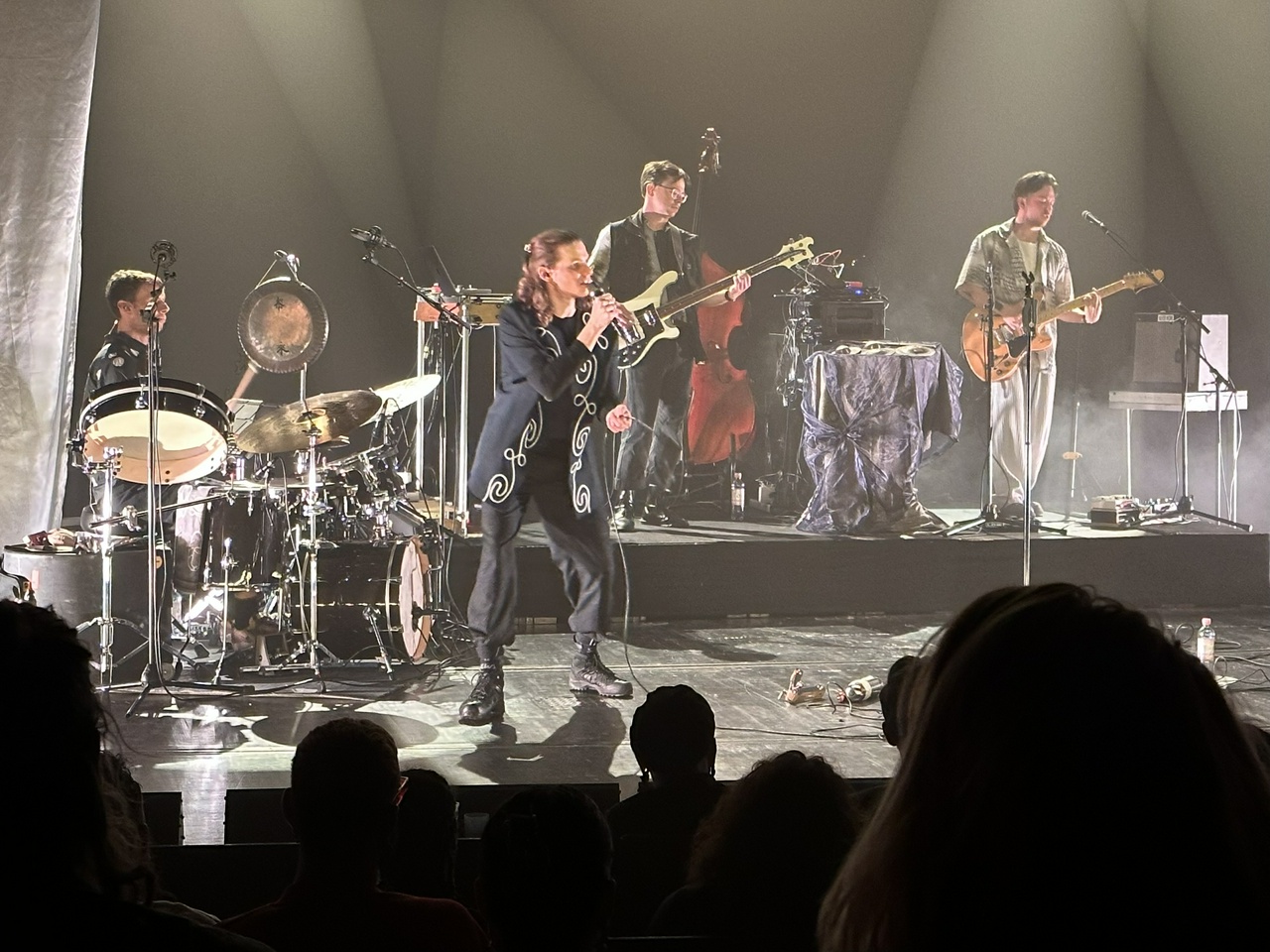 Und Musik gabs dann auch noch auf der Volksbühne am Rosa-Luxemburg-Platz, Jungstötter. Aus der Konserve tue ich mir mit seiner Crooner-Stimme etwas schwer, aber live war das sehr beeindruckend, wie auch der restliche Sound der immer am Rand der Dissonanz war, aber dann doch irgendwie gepasst hat. Fabian Altstötter ist der Partner von Anja Plaschg, a.k.a. Soap and Skin, die neben sehr viel anderer guter Musik das wunderschöne Duett Ich tauche auf mit Toctronic gemacht hat und zu deren Musik ich letztes Jahr im November in München noch im Moshpit unterwegs war. So schließt sich der Kreis, irgendwie.